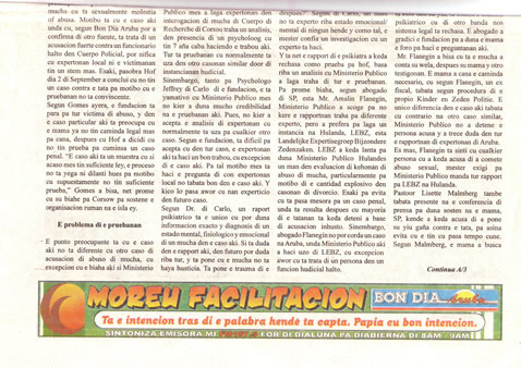 Ondertussen heeft het Openbaar Ministerie, zoals Bon Dia het verleden week gepubliceerd heeft, onder andere een rapport van Dr. Enahoro naar de Landelijke Expertisegroep Bijzondere Zedenzaken, het LEBZ, gestuurd ter evaluatie. Dit is helder geworden tijdens een persconferentie, georganiseerd door de stichting Lisette Gomes. De reden waarom deze zaak verleden week naar voren werd gebracht was het feit dat het de eerste keer is op Aruba dat er beroep werd gedaan op het LEBZ.